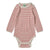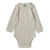Denne bodystocking er strikket i en irregulær ribstruktur med lange ærmer og rullekanter. Den er designet med rund hals og har en praktisk lukning ved skulderen med perlemorsknapper og trykknapper forneden. Bodyen er lavet af ekstrafin merinould. Vores merinould er BLUESIGN certificeret, fri for skadelig kemi og kommer fra mulesing-fri får.