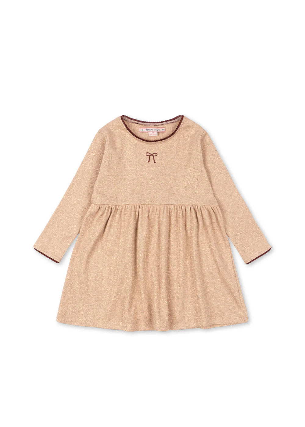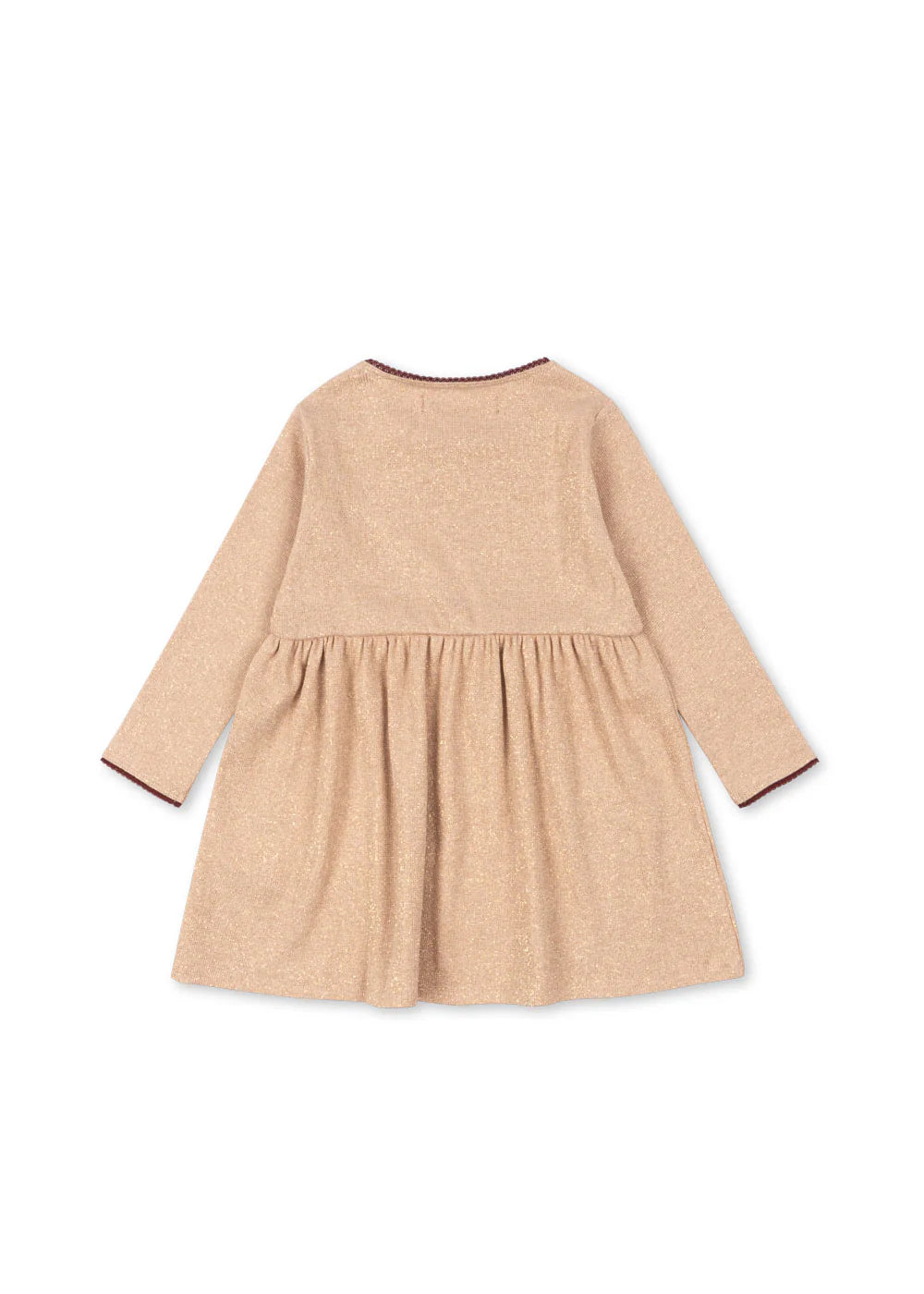 Blød kjole i bomuld med stræk. Kjolen er vævet med skinnende lurex-tråd, der tilfører et strejf af glimmer.