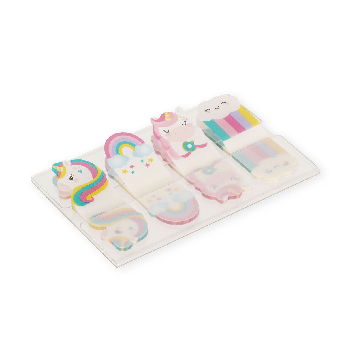De sødeste skrivebare selvklæbende sidemarkører, du nogensinde finder. 4 sæt med 20 selvklæbende sidemarkører i papir med enhjørningstema. Kan fjernes og flyttes uden at beskadige siden. Ideel til at lave noter i bøger og notesbøger.