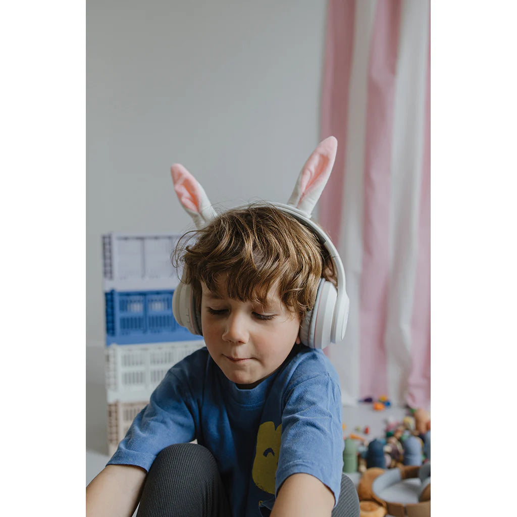 KIDYEARS Kanin er det sødeste headset til små musikelskere! De magnetiske kaninører giver et sjovt og personligt udtryk, mens den sikre lydbegrænsning på 85 dB beskytter børnenes hørelse. Headsettet kan bruges både med Bluetooth og kabel, og de bløde ørepuder sikrer maksimal komfort – perfekt til musik, film eller læring på farten.