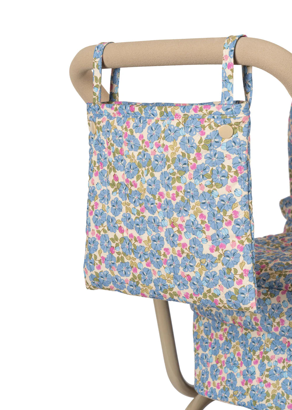 Med fire store hjul, der gør den nem og stabil at gå med, quiltet stof og fine muslingekanter.