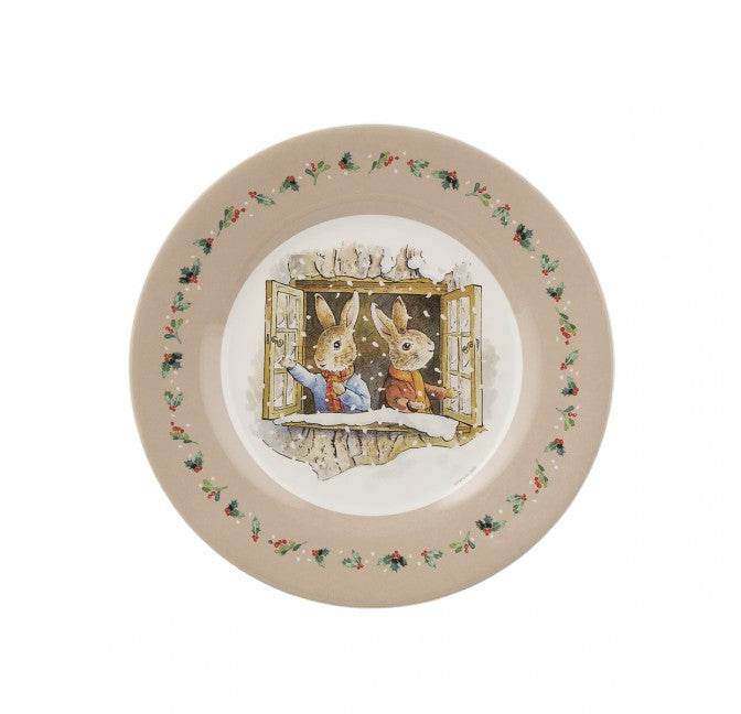 En magisk desserttallerken designet til de små – men ikke kun dem! Peter Kanin nyder søde vinterøjeblikke: omgivet af gaver, pyntende træ, byggende en snemand eller dagdrømmende ved vinduet. Dens festlige og blide design forvandler hvert måltid til en julefest. Lille, flad og perfekt egnet til børn, vil den også charmere voksne – den perfekte måde at dele julens magi ved bordet. De er så smukke, at du måske tøver med at dække dem med et stykke julekage.