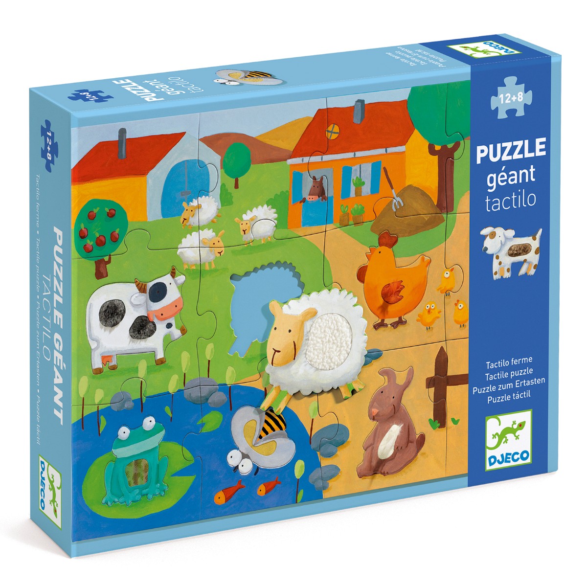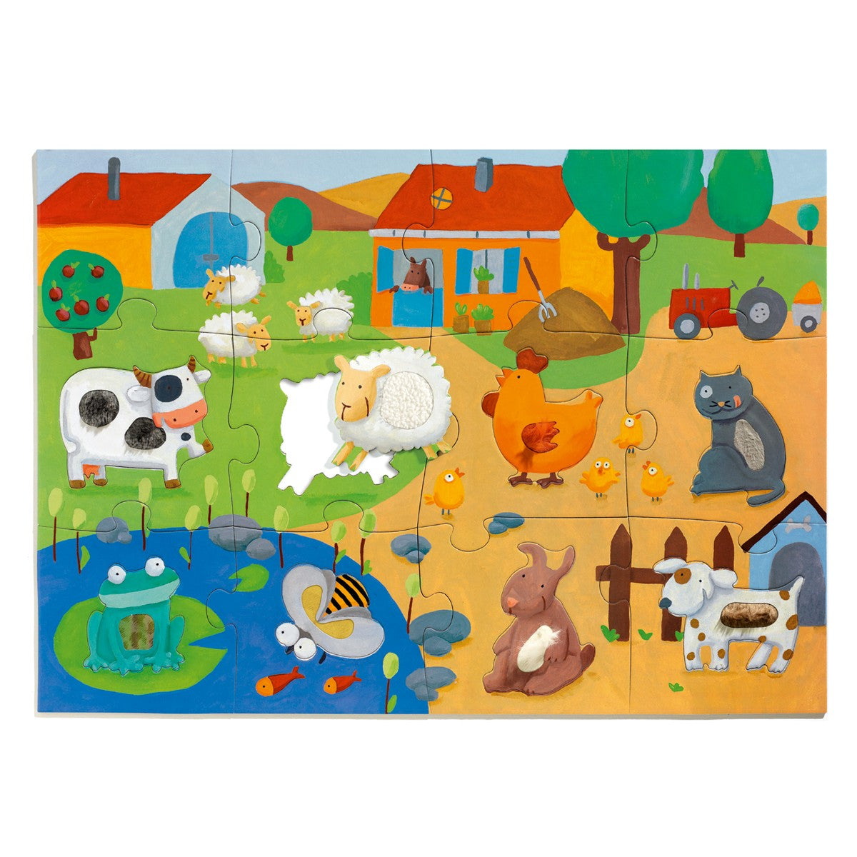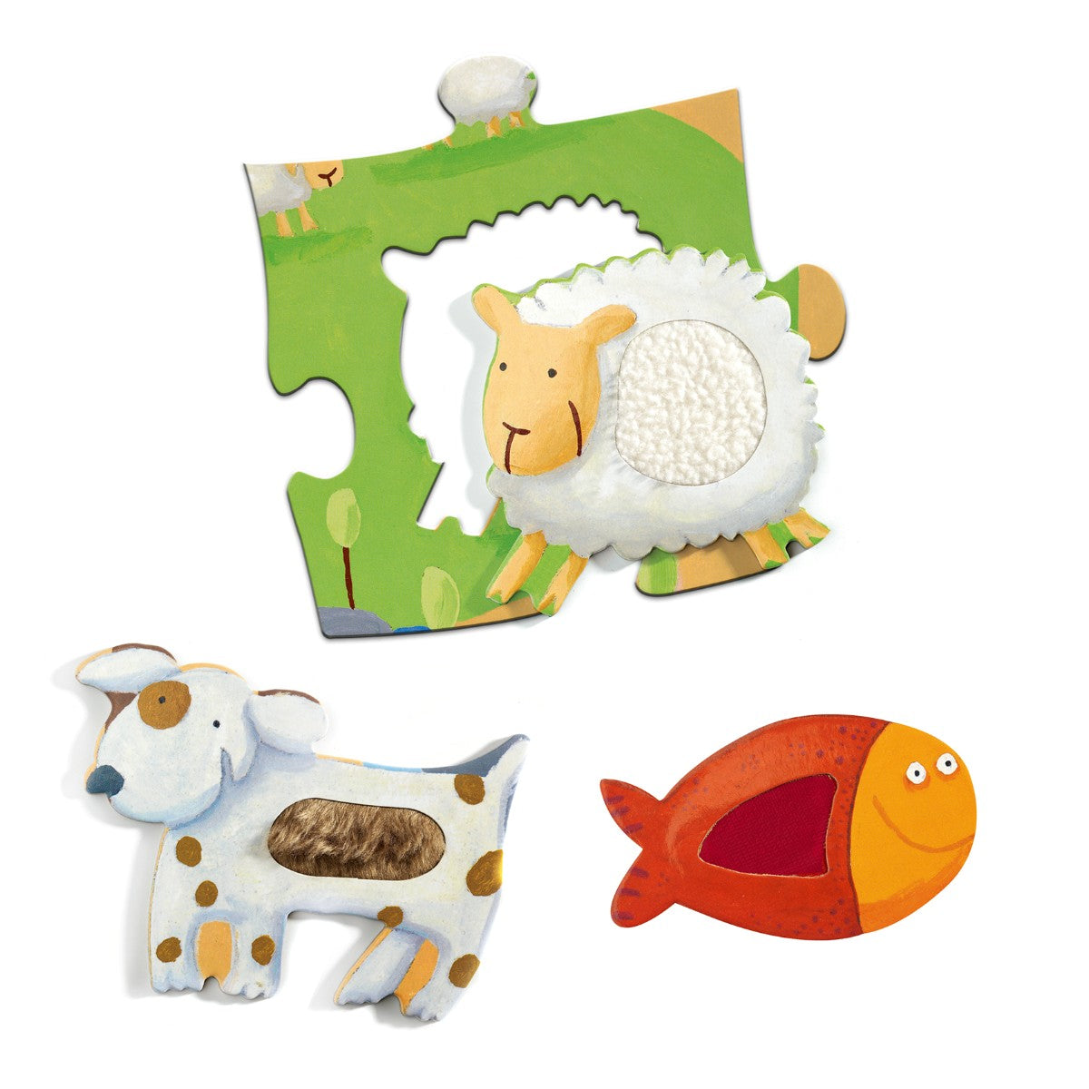 Sødt puslespil med følebrikker, der styrker barnets taktile sans.